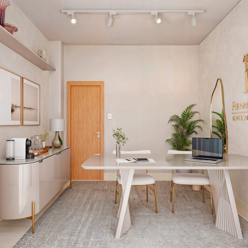 No Projeto Ferad, desenvolvido para um escritório de advocacia, criamos uma composição que une elegância e minimalismo. Optamos por uma paleta de cores neutras, como bege, cinza claro e sutis detalhes em dourado, buscando transmitir seriedade e harmonia com os mobiliários. O objetivo foi criar um ambiente de trabalho altamente funcional, com design sofisticado, que proporcionasse uma atmosfera acolhedora e profissional para nossa cliente. O espaço visa transmitir credibilidade, confiança e produtividade, refletindo sofisticação, atenção aos detalhes e oferecendo uma experiência convidativa, ideal para um escritório de advocacia de alto nível.